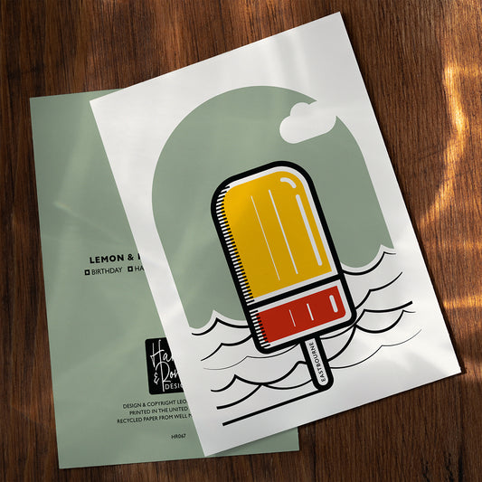 LEMON & RHUBARB ICE LOLLY GREETINGS CARD