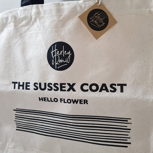 THE SUSSEX COAST (HELLO FLOWER) NATURAL/BLACK CANVAS SHOPPER BAG