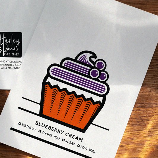 BLUEBERRY CREAM CUPCAKE GREETINGS CARD