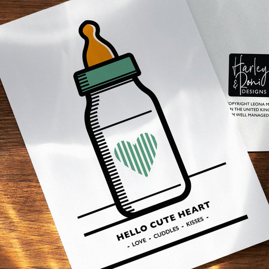 BABY BOTTLE, NEW BABY GREETINGS CARD