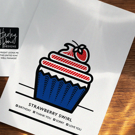 STRAWBERRY SWIRL CUPCAKE GREETINGS CARD