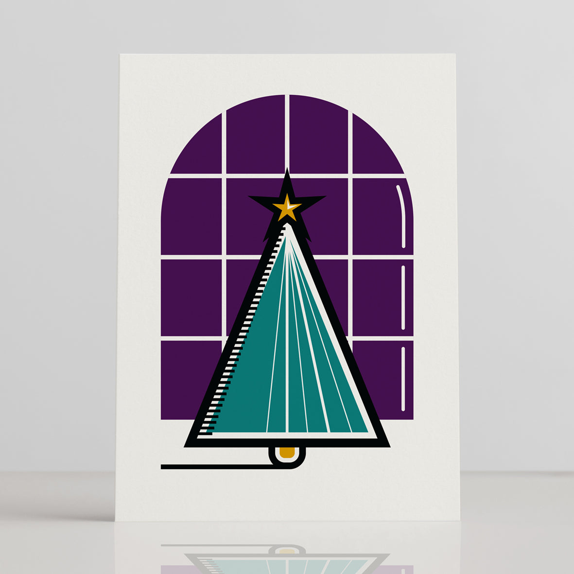 Christmas tree card, with colours inspired by the beautiful combinations of artist Lubaina Himid.