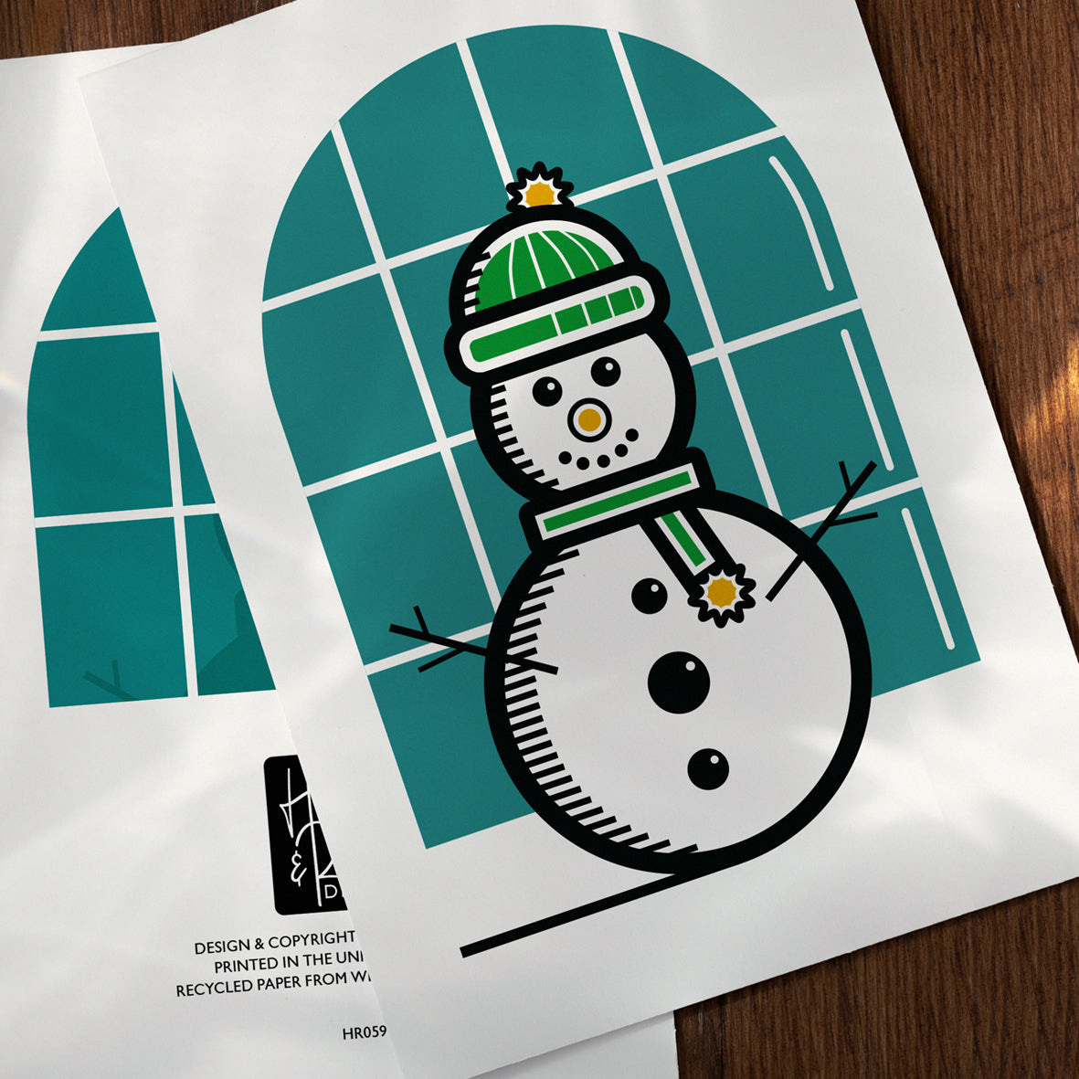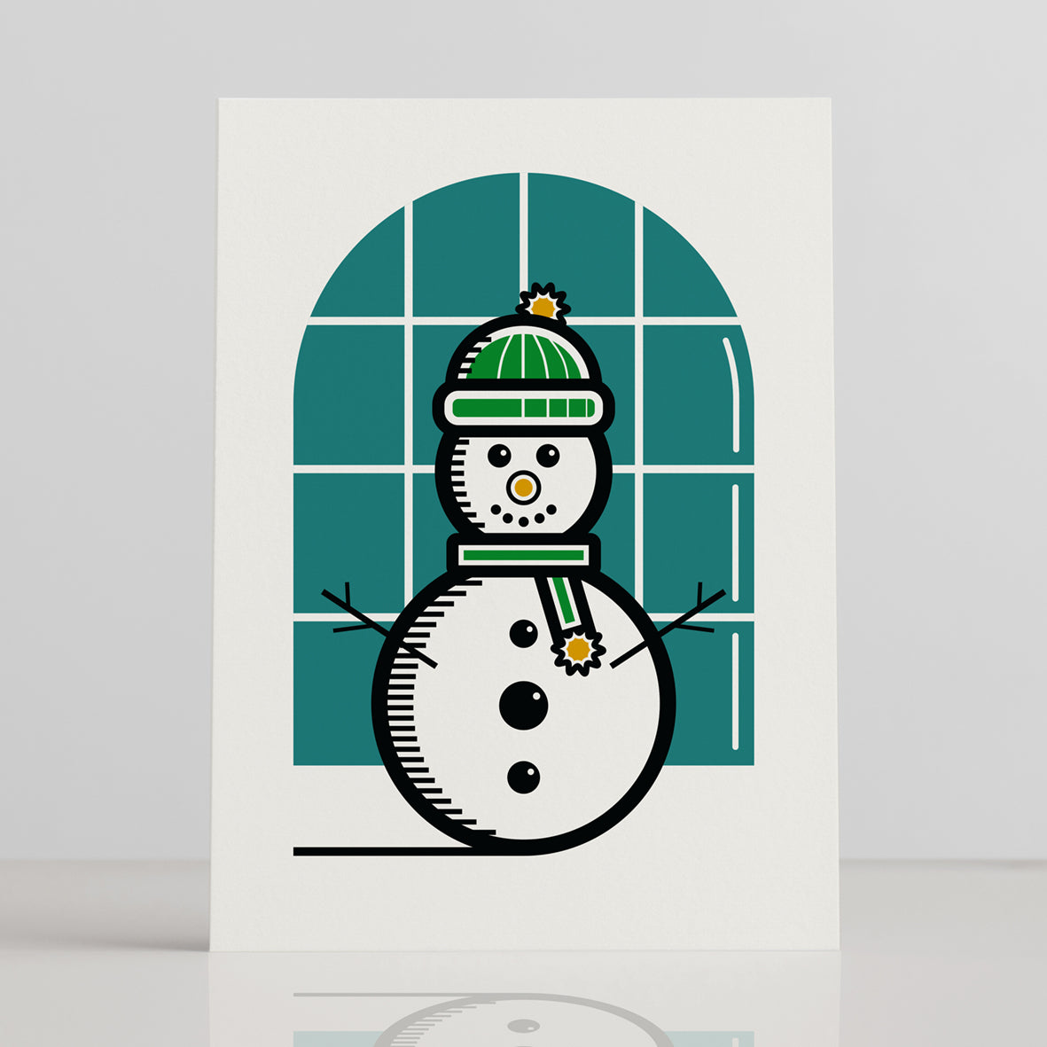 Snowman Christmas card, with colours inspired by the beautiful combinations of artist Lubaina Himid.